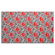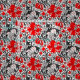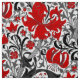 Fabrikat i en vintage William Morris-blommigt tryckt med stiliserade liljor och iriserade, digitalt förstärkt och färgad, i nyanser av grått/grått och svart blad, med djupa röda blommor, på vit bakgrund