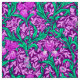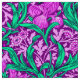 Fabric in a William Morris, Art nouveau, textil print of irises and lövs, digitalt Enhanced and färgad, in soft orchid and turcoise, on a Djup ametyst lila bakgrund