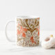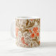 Mugg i en William Morris, Art nouveau, textilavtryck av järn och löv, digitalt utökad och färgad i korall orange, med kaffe brun och taupe tan löv
