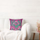 Pillow i en William Morris, Art nouveau, textilavtryck av iriser och löv, digitalt förstärkt och färgad, i Fuchsia och isens rosa, i grönt för påfyllning och vit, på djupa vin lila