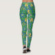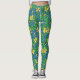 Leggings i en William Morris, Art nouveau, textilavtryck av irisar och löv, digitalt utökad och färgad, i gyllene gult, grönt och blått, på en djup koboltblå bakgrund