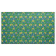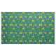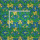 Fabric in a William Morris, Art nouveau, textil print of irises and lövs, digital Enhanced and färgad, in golden gult, grönt and soft blue, on a Djup kobolt blue bakgrund