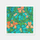 Pappra blöjor i en William Morris, Art nouveau, textilavtryck av iriser och löv, digitalt utökad och färgad, i orange, kalkgrön och mjuk akvarium, på djupa turkobakgrunder