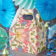 William Morris designade Lodden-textilprodukten mönster 1884. Blommigten mönster har en blommigt konst i flytande färg av rosa, grönt och blått.