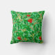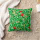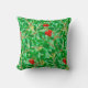 Dekorativ kudde i en mönster av lyché träd och löv i en William Morris Art nouveau, i skalad av kalk och djup grönt, accentuerad med röd lyktfrukt och gult grenar, på blommar bakgrund