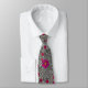 Tie i en vintage William Morris, Art nouveau, marigold damask, avtryck av löv och blommor, digitalt förstärkt och färgad, i nyanser av grått/grått och vitt, accentuerat med fuktasrosa och korallalfärgad orange, på en mörk grafit grått bakgrund