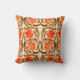 Dekorativ kudde i en vintage William Morris-mönster av stiliserade krattblommor och löv - blommor i en gradient med medel- till djup Mandarin-orange, accentuerade med chokladbrun, på bakgrunden av en pastellkrita med krämig orange