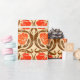 Omslagning papper i en vintage William Morris-textila mönster av stiliserade krattblommor och löv - blommor i en övertoning av medium till djup Mandarin-orange, accentuerad med chokladbrun, på en baksida av klisterskyddsklassificerad orange
