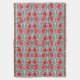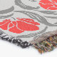 Filt i vintagen William Morris-textilier mönster av styliserade kamerablommor och löv - blommor i en gradient av mörk till ljust röd, med grafitfärgat grått/grått-löv, på en lätt grått-bakgrund i silver