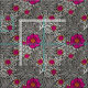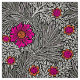 Tyg i en vintage William Morris, art nouveau, det damastast trycket för ringblomma av löv och blommor som förhöjs och färgas digitalt, skuggar in av grått/grå färg och vit, betonat med fuchsia rosor och korallorangen, på en mörk grafitgråttbakgrund