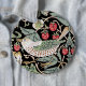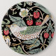 Anpassad från ett William Morris-Blommönster, jordgubbstjuv med en svart bakgrund av fåglar, blommor och bär.