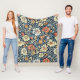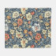 Seamless William Morris-style textile pattern featuring orange, cream, and yellow flowers with blue-gray acanthus leaves against a dark navy background.