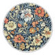 Seamless William Morris-style textile pattern featuring orange, cream, and yellow flowers with blue-gray acanthus leaves against a dark navy background.