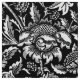 Fabric i en vintage William Morris, Art nouveau, blommigt print av stiliserade solblommor, digitalt förbättrad och färgad, i svartvitt, accentuerad med silver grått / grått