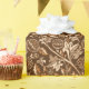 Förpackning papprare i en vintage William Morris, Art nouveau, blommigt avtryck av stiliserade solblommor, digitalt förstärkt och färgad, i mörk choklad brun och beige, accentuerad med kameltan