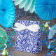 William Morris Thistle Damask White på Cobalt Blue Presentaskar