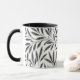 Kaffe mugg i en mönster av styliserad virad grenar i William Morris Art nouveau och löv i skuggor av silver grått/grått, med svart accent, på vit bakgrund