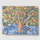 William Morris Woodpecker Tapestry Blommigt Vintage Art Den visar en vekare sitta i gren på en frukt träd och har en tydlig ornerad bakgrund av blå löv och orange frukt. Art av William Morris Movement: British Arts and Crafts/Art nouveau Benice ornate artistic blommigt vintage bra art mönster design med en blomstrande träd, löv och fåglar.