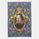 Barden - den original- designen på denna kökshandduk är ett porträtt av författare William Shakespeare. Porträtt är i en utsmyckad oval guld- ram med rosett band och en krona överst. Blåttbakgrundstapeten dekoreras med slott, kung kronor och gula och röda blommor som kommer med för att vara besvärad romantiken, tragedin och komedin av hans lekar och poesi.