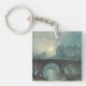 Alnwick Castle Joseph Mallord William Turner (1775-1851). Det mörk blått nattlandskapet. I förgrunden finns en grupp hjortar. I mitten finns en bro över floden. Måne ligger i solnedgången i himlar. Reproduktion av berömd av konstverk bilder på det offentliga området.