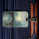 Alnwick Castle Joseph Mallord William Turner (1775-1851). Det mörk blått nattlandskapet. I förgrunden finns en grupp hjortar. I mitten finns en bro över floden. Måne ligger i solnedgången i himlar. Reproduktion av berömd av konstverk bilder på det offentliga området.