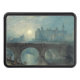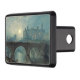 Alnwick Castle Joseph Mallord William Turner (1775-1851). Det mörk blått nattlandskapet. I förgrunden finns en grupp hjortar. I mitten finns en bro över floden. Måne ligger i solnedgången i himlar. Reproduktion av berömd av konstverk bilder på det offentliga området.