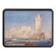Rhodes. Joseph Mallord William Turner (1775-1851). Ett vackert sjölandskap i rosa och blått. I förgrunden finns det båtar och fraktaser i bukten nära stadens väggar. I mitten ligger torn. I bakgrunden finns det en stad med stenhus. Reproduktion av berömd av konstverk bilder på det offentliga området.