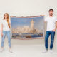 Rhodes. Joseph Mallord William Turner (1775-1851). Ett vackert sjölandskap i rosa och blått. I förgrunden finns det båtar och fraktaser i bukten nära stadens väggar. I mitten ligger torn. I bakgrunden finns det en stad med stenhus. Reproduktion av berömd av konstverk bilder på det offentliga området.