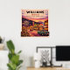 This poster brings together warm evening colors, retro signage, and timeless roadside details, making it a strong visual piece for any space. It fits naturally in living areas, offices, or anywhere that could use a touch of travel nostalgia and desert charm.