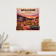 Step into classic Route 66 with this vintage-style Williams artwork featuring glowing neon motels, a lively main street, and mountain scenery at sunset. Known as the “Gateway to the Grand Canyon,” Williams captures the atmosphere of old-school road trips and small-town Americana.
