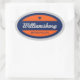 Oval-skyltning med stadsdelarna i New York City. Officiellens orange och blå färg av NYC. Williamsburg-området Brooklyn. Bath Beach, Bay Ridge, Bed-Stuy (Bedford Stuyvesant), Bensonhurst, Boerum Backe, Boro Park, Brighton Beach, Brooklyn Heights, Brownsville, Bushwick, Canarsie, Carroll Gardens, Clinton Backe, Cobble Backe, Coney Island, Cobble Krona Heights, Cypress Backe, Dyker Heights, Farragut, Flatbush, Flatlands, Fort Greene, Gowanus, Gravesend, Greenpoint, Kensington, Little Odessa, Marine Park, Midwood, Park Slope, Prospect Heights, Red Krok, Sheepshead Bay, Sunset Park, Vinegar Backe, Williamsburg, Wingate