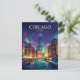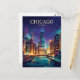 Chicagos siluett är en mästarklass inom modern arkitektur, tätt intill Lake Michigans mörka, reflekterande stränder. Willis Tower förankrar kompositionen och dess siluett i flera nivåer kastar en massiv, geometrisk skugga mot det flimrande stadsgitret.
