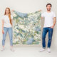 Willow Little Magnolia Wallpaper Floral Coastal fleece throw blanket with beautiful toile jardin style print in shades of ivory, blue, and green greenery.