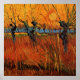 Willows på Sunset av Vincent van Gogh är en vintage bra konst post impressionism landskapsmålning. Ett glödande sol ligger bakom en fält av högt gräs och en grov av pollargräs i träd vid solnedgången under hettens sommardagar. Vackra hösten färg i varma tonar av gyllene gulter, orangar och . Om konstnären: Vincent Willem van Gogh (1853-1890) var en av de mest berömd Post impressionist-målarna under sin tid. Hans arbete var mycket anmärkningsvärt för dess skönhet, känslomässiga ärlighet och djärva färg.