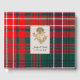 Höglandsbröllop inspirerad gästbok gjord i det klassiska röda, gröna, blå och vita moderna Wilson-tartan-rutmönstret. Ett guldbord textområde på framsidan av boken har grafik av en gyllene tistel och svart anpassad text som är redo att anpassas.