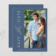 Budgetblått Bröllop-fotoskript Spara datumet med kuvert.