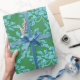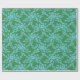 Winding Peony Woodcut in Green and Aqua Presentpapper