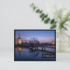 Vykort med två belysta vindkraftverk och en dragbro med reflektion i kanalens vatten i det sista ljuset vid solnedgången i Kinderdijk i Nederländerna med svart kant och texten: "Nederländerna".