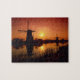 Windmills vid sunset, Kinderdijk, Nederländerna Pussel