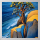 Windswept Serenity A Lone Träd bortser från Azure Sea från solbelysta kustklippor