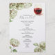 Elevate your celebration with this botanical wedding menu, a beautifully crafted piece from the Do Tell A Belle suite featuring soft green hydrangea watercolor artwork. Designed with an elegant floral and red wine border, this menu doubles perfectly as a wine tasting food menu or wine tasting menu template, offering a refined touch that still feels like a budget-friendly luxury.