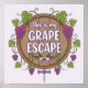 Escape into a world of relaxation and fun with this poster. Featuring the playful phrase "This is my Grape Escape" displayed on the top of a wine barrel, this design is surrounded by grapes and winding vines for a touch of vineyard charm. Perfect for wine lovers, kitchen decor, home bars, or cozy nooks, this poster adds a whimsical, vibe to any space.