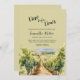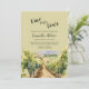 Vino före Vin Winery Inbjudningskort för möhippan har en vattenfärgsvindruta och bergsutformning. Det finns plats på baksidan för bruden och brudgummens initialer på en vin-hink.