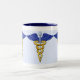 Winged Doktor Caduceus in Blue and Guld. Personalen har upphöjt blått vingar med guldinsnöade ormar.
