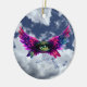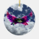 A bold, surreal protection‑themed design featuring a vibrant winged eye against a dramatic sky. Printed in crisp detail on a durable round ceramic ornament, this piece carries intention and symbolic energy everywhere you go. Perfect for decorating, alters, or gifting to anyone who loves mystical or spiritual art. Lightweight, vivid, and made to last.