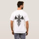 A sleek and aggressive symmetrical tribal crest featuring a central vertical axis resembling a blade or dagger. Flanked by sharp, leather-textured bat wings, the design uses interwoven geometric patterns and jagged lines to create a powerful totem. Rendered in a weathered obsidian style
