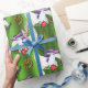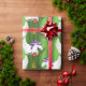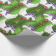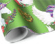 En underbar, magisk enmajs som är papper för jul, med ett mönster av vackra viftade unicorns med flytande lila och rosa manes, guld horns och vackert vitt vingar. De har hugg och poinsettia under sig och är omgivna av gyllene julgransar och guld Julgranar, alla på en festlig, livfull grönt.