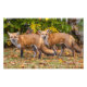 Ett vackert rävpar med mannen ge oss en blinkning. Höst löv faller.