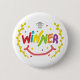 En roligt Vinnare-design har ord i färglöst skrift med trofé över, lagret lämnar till båda sidor, ett stort leende och stjärnor. För vinnare som vinner stort!