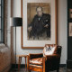 Capture the commanding presence of Sir Winston Churchill with this evocative pastel-style portrait. Standing resolute against a wood-paneled backdrop, the legendary Prime Minister is depicted in his signature dark suit and bow tie, with a steady hand resting on his hip. The artwork uses bold, expressive strokes to highlight his steely gaze and determination, embodying the strength of British leadership during World War II. A powerful tribute to history, perfect for an office, library, or study.